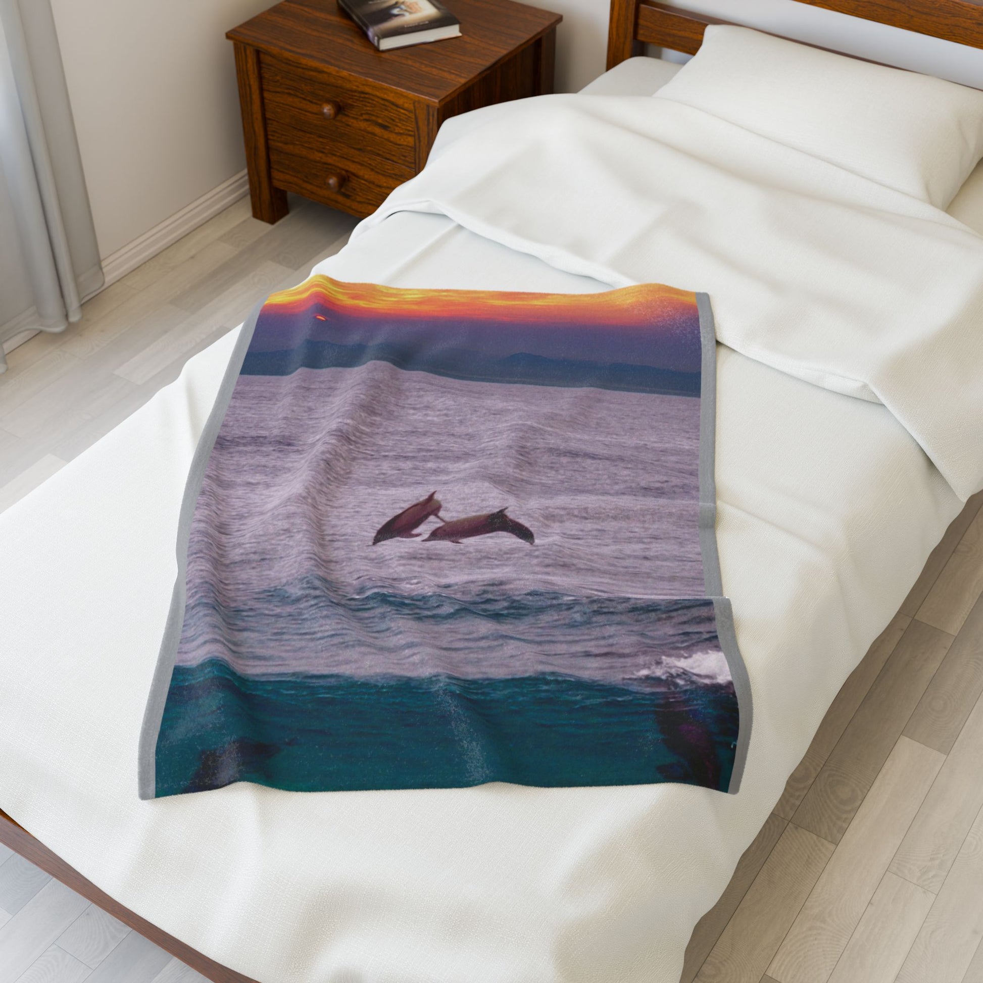 Experience the serene sight of dolphins leaping through sunset surf with this velveteen microfiber blanket. Soft, vibrant, and ocean-inspired, it’s perfect for cozy evenings, beach-themed celebrations, or adding a splash of nature to your bedroom. This heartfelt keepsake is for animal lovers and coastal dreamers alike.