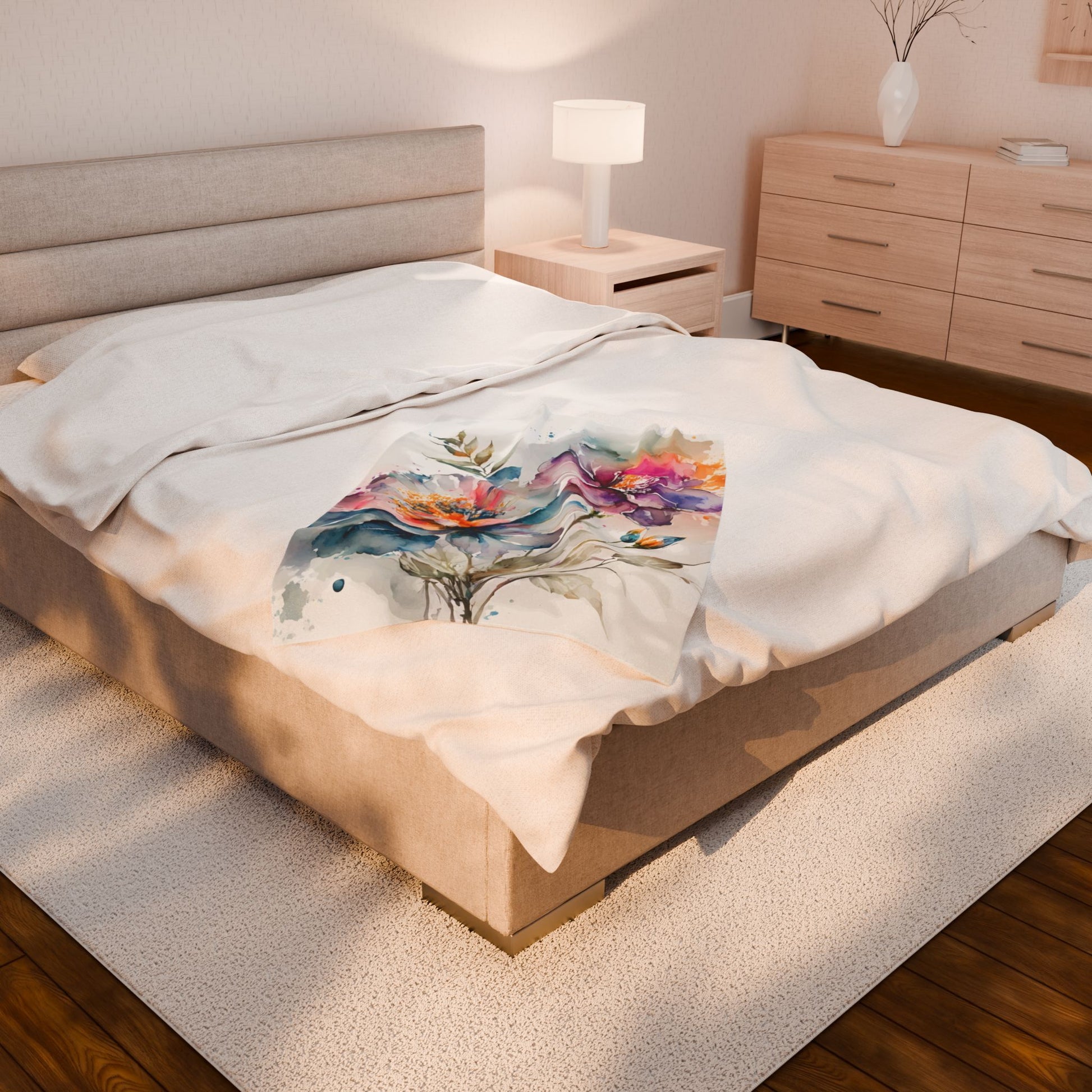 Floral Velveteen Plush Blanket, Cozy Home Decor, Gift for Her, Warm Throw, Housewarming, Bedspread, Winter Essentials